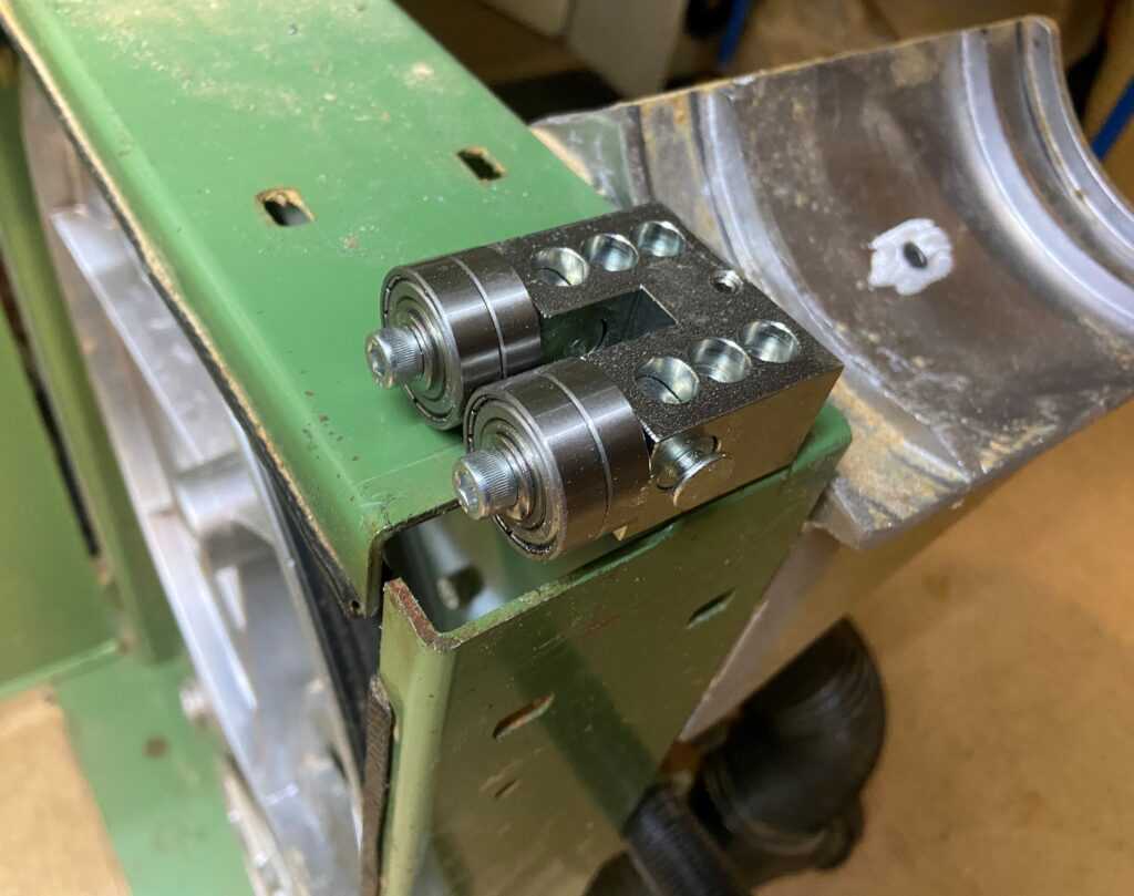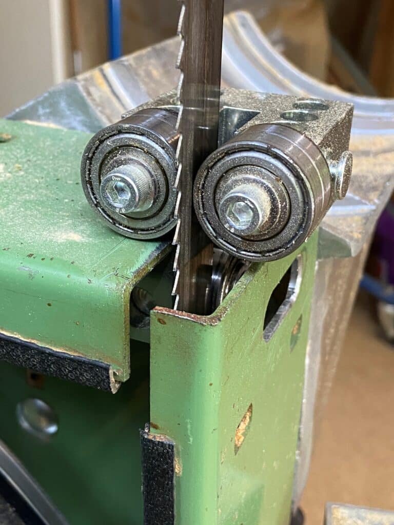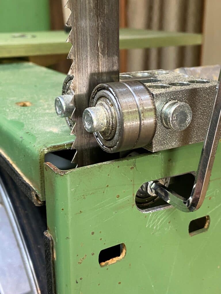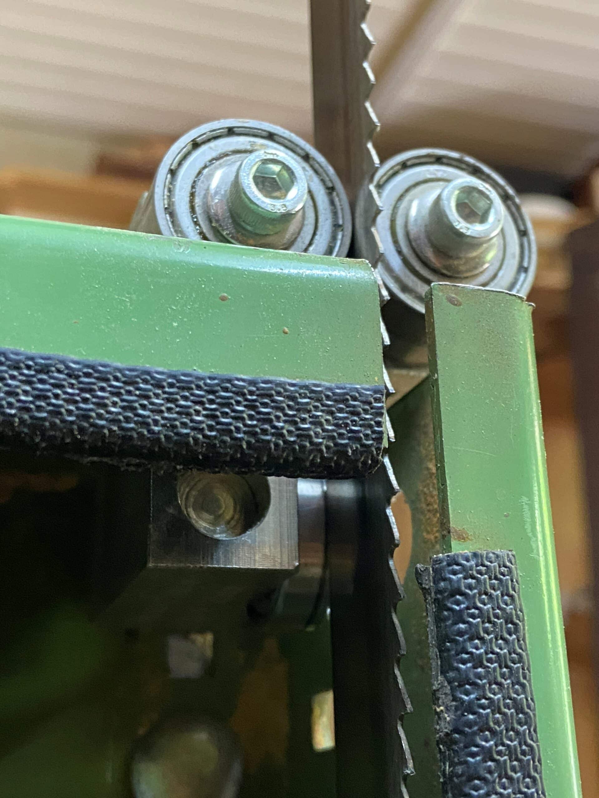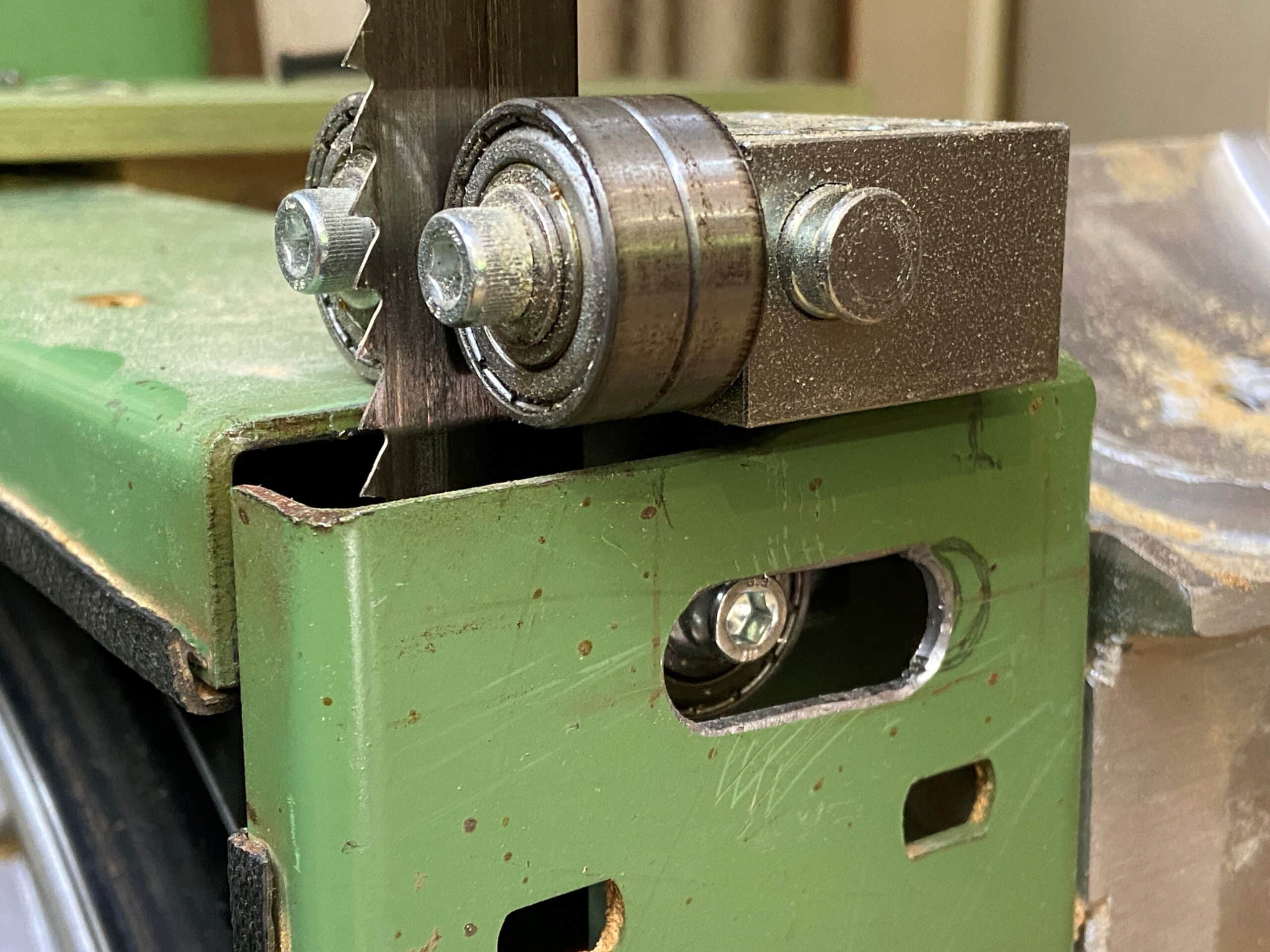 Auf den folgenden Bildern ist zu sehen, wie er den Austausch der Sägeblattführung an seiner Elektra Beckum BAS 500 Bandsäge gelöst hat.