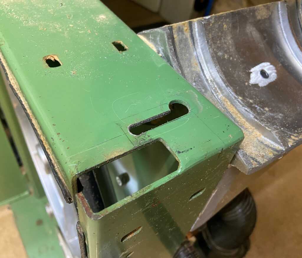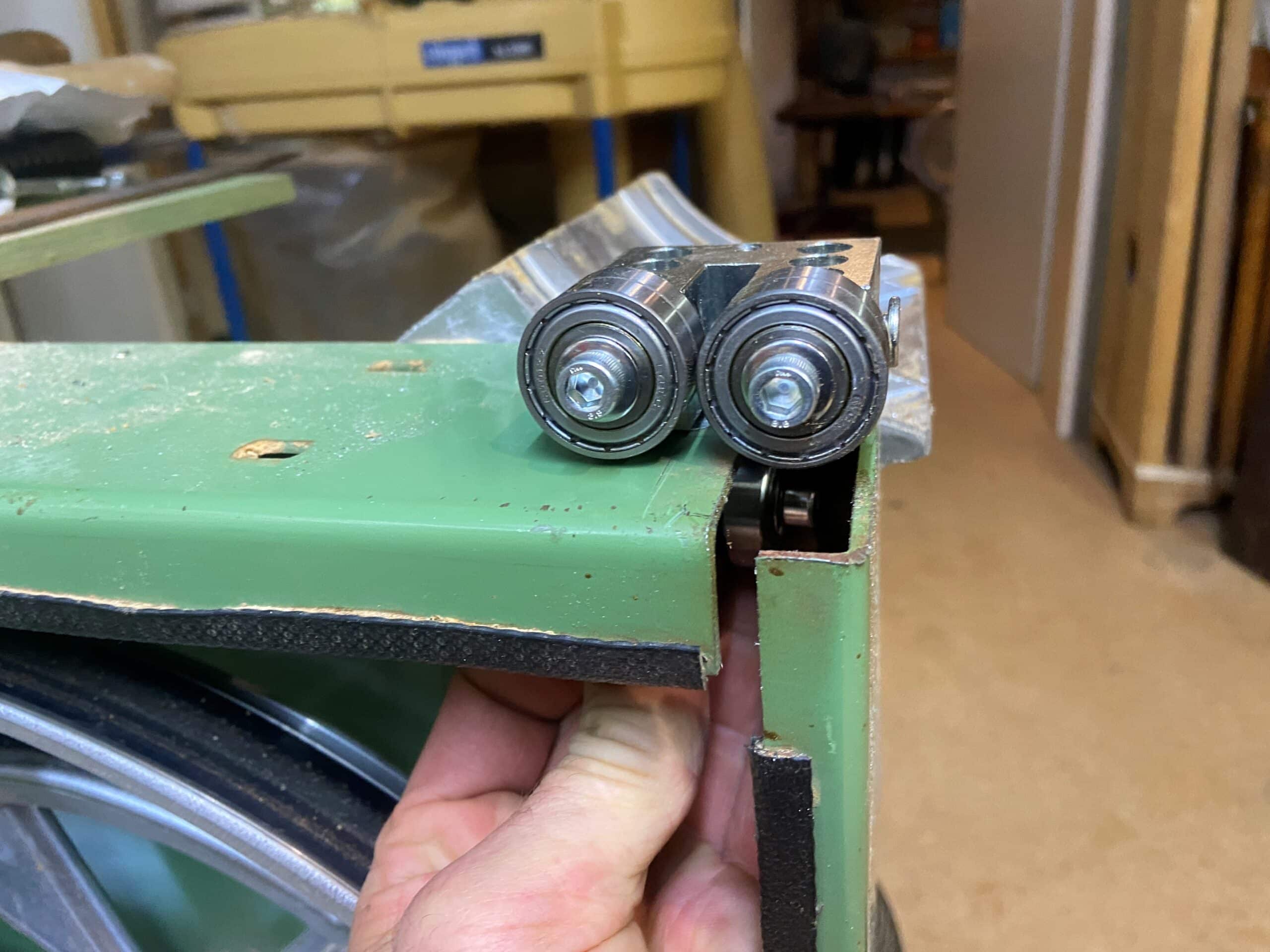 Das war durch ein Langloch möglich. Um nun an die Stellschraube zu gelangen musste ebenfalls ein Langloch gebohrt werden um Rollenanschlag für hinten einstellen zu können. Anbei einige Fotos des Umbaues.