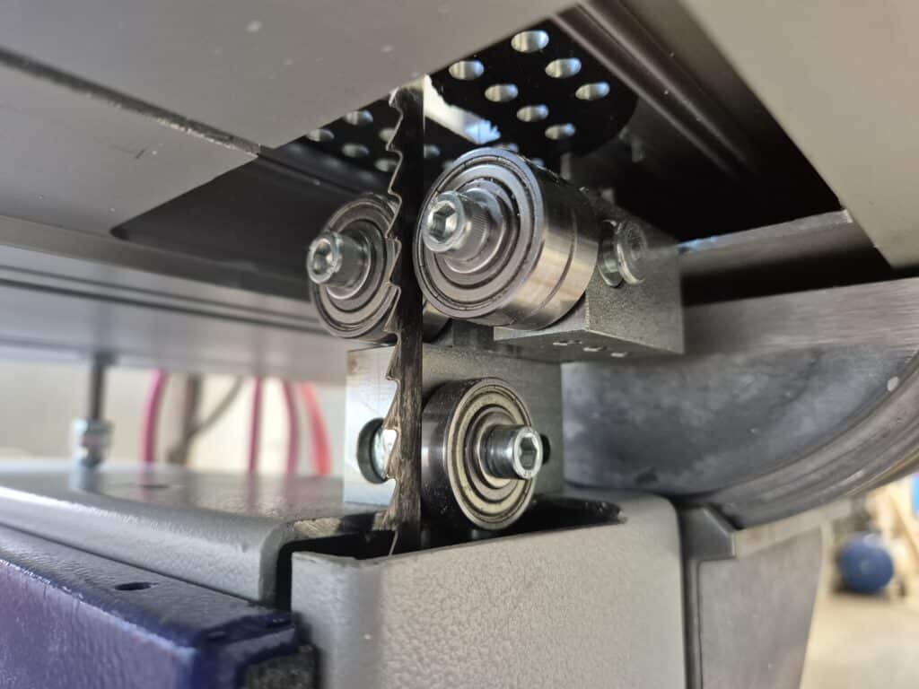 Unser Kunde hat an seiner Elektra Beckum BAS 315 Bandsäge die originalen Sägeblattführungen über und unter dem Tisch ausgetauscht.