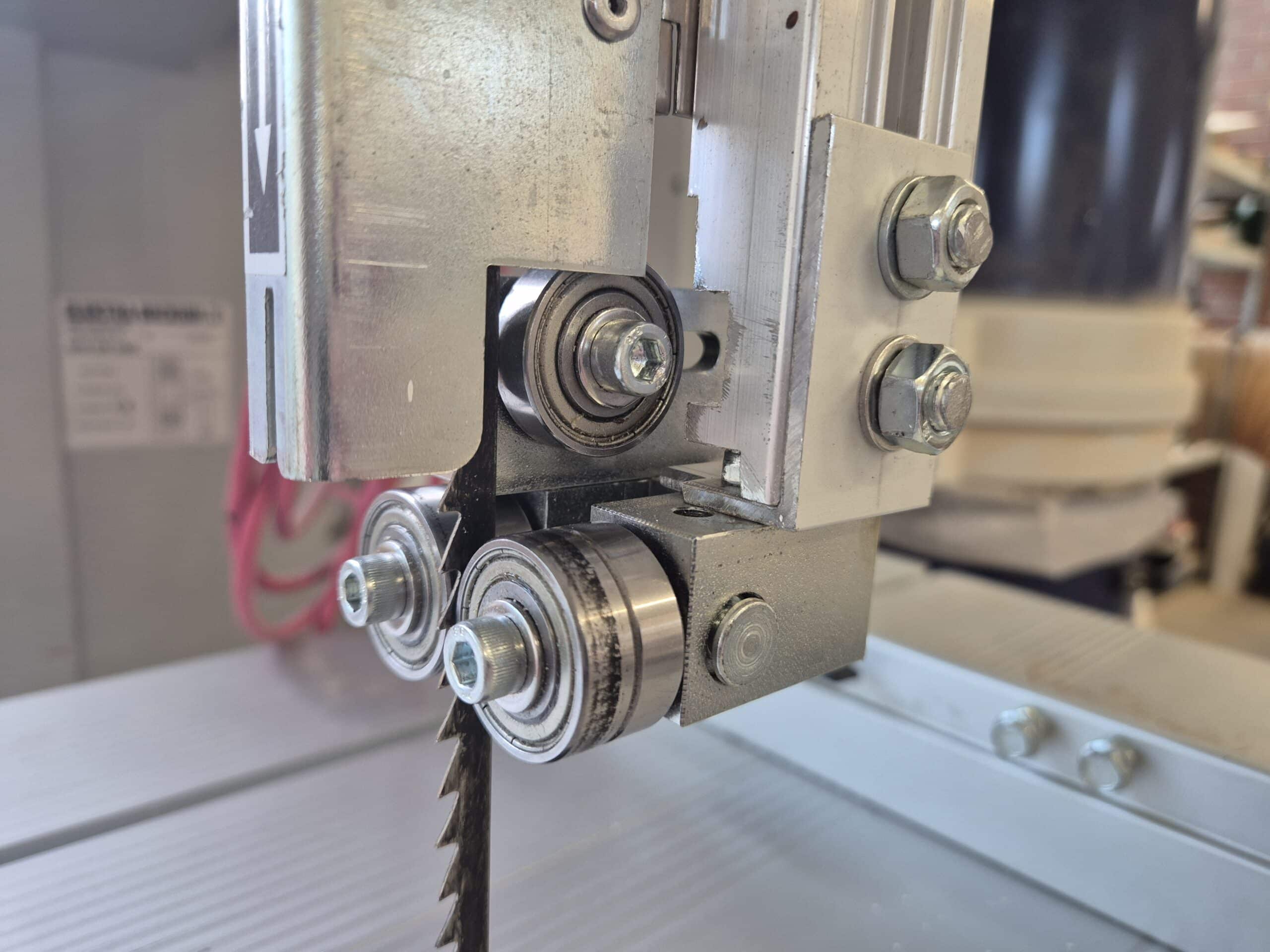 Es wurde unsere 5×5-Sägeblattführung mithilfe der exzentrischen Halterkonsole an der Maschine montiert. Da häufig Kurvenschnitte ausgef...