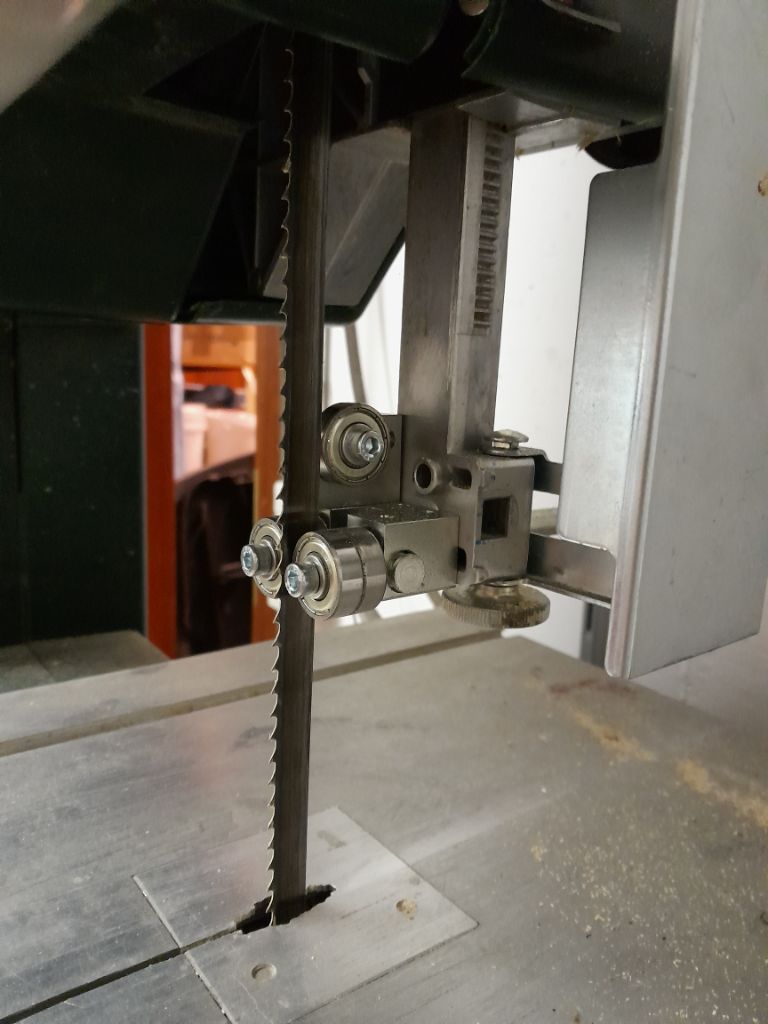 Unsere 4×4-er Sägeblattführungen wurden auf einer Metabo BS 0633 Bandsäge installiert. Glücklicherweise hat die werkseigene Halterung auch in diesem Fall dazu beigetragen, dass keine größeren Umbauten am Gerät erforderlich waren.