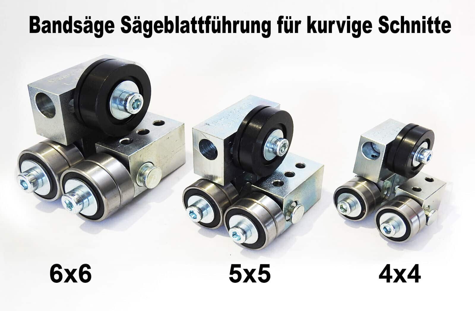 5×5 Sägelattführungen: für Bandbreiten von 6 mm bis 35 mm und Raddurchmesser bis 500 mm