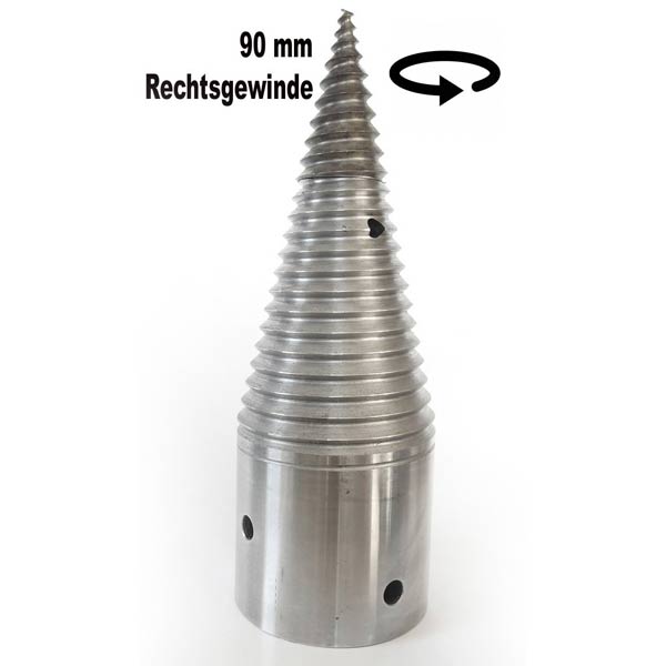 Unser mitlerer Drillkegel von der Palette hat einen Durchmesser von 90 mm. Es eignet sich für das Spalten von Brennholz, aber auch für Meterholz. mit größeren Elektromotoren mit Verwendung von Keilriemenscheiben für die richtige Geschwindigkeitsreduktion. Das Spalten von Holz ist mit Drillkegel einfach und sehr schnell.
