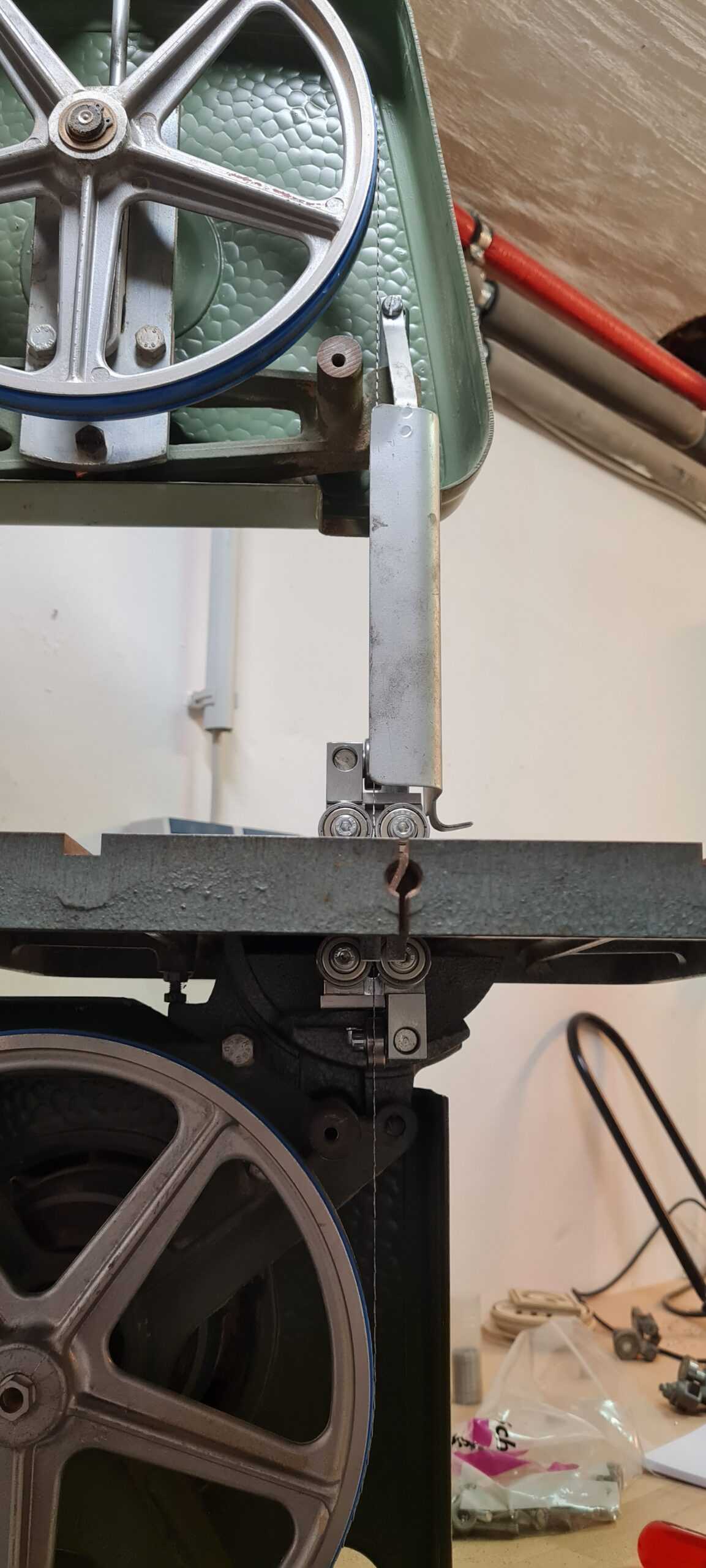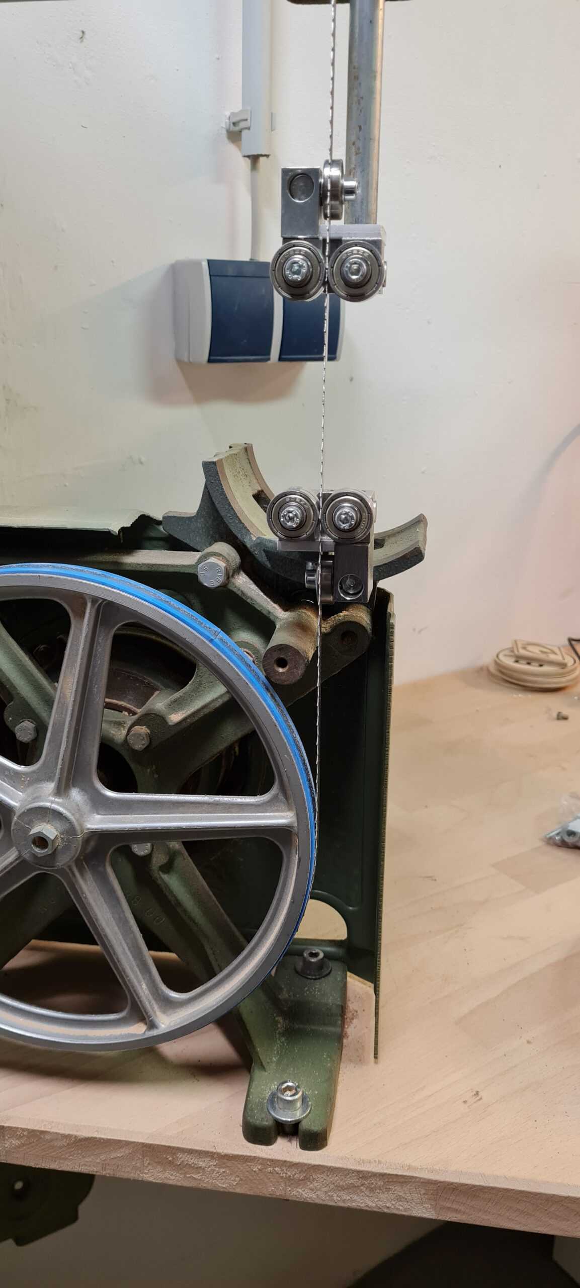 Unser Kunde hat die Sägeblattführungen einer alten Rockwell-Tischbandsäge durch unsere 4×4-Blattführungen ersetzt. Der Umbau war auch bei dieser Säge einfach. Die Blattführung wurde ohne zusätzliche Bohrungen mit Schrauben befestigt.