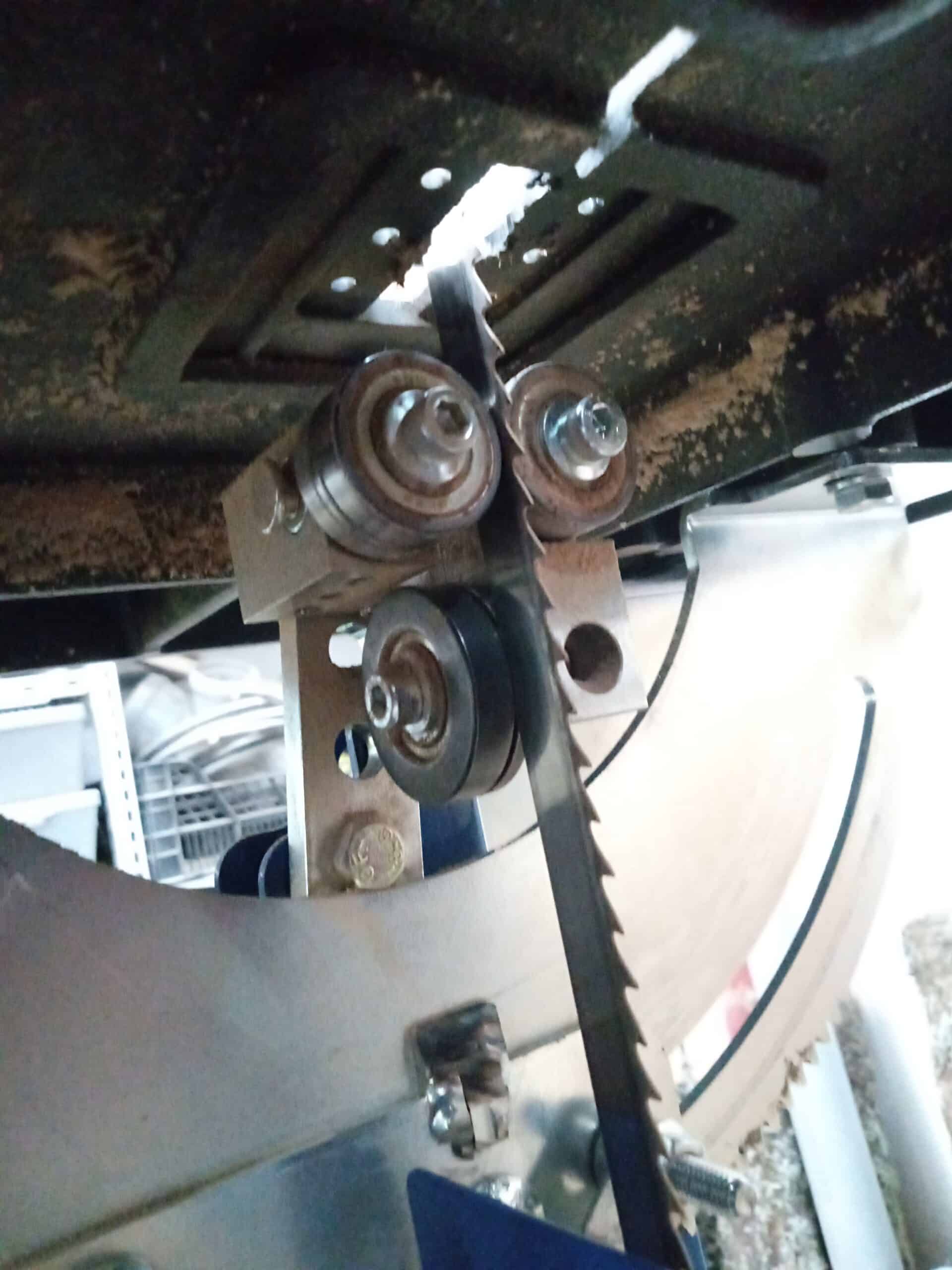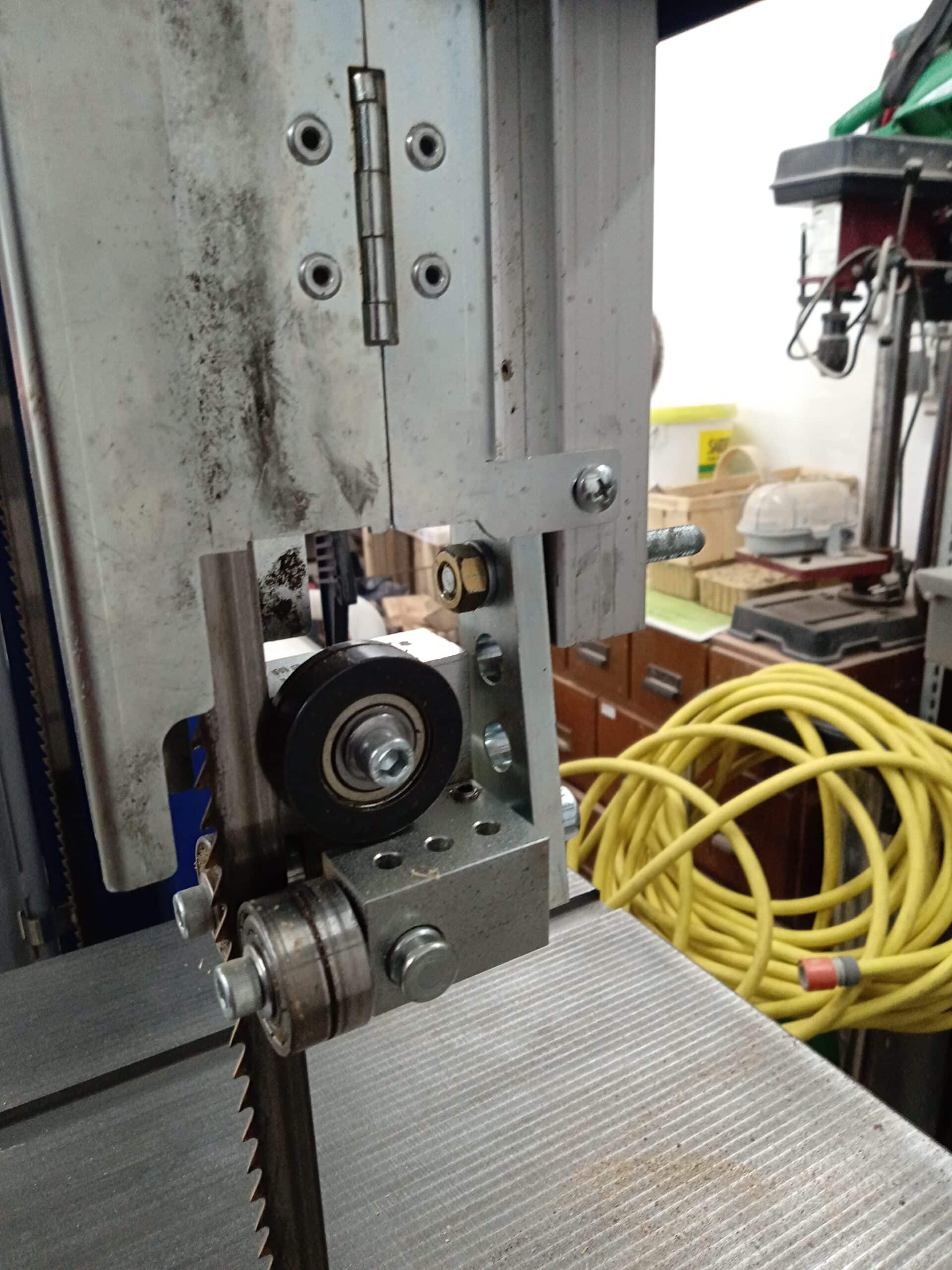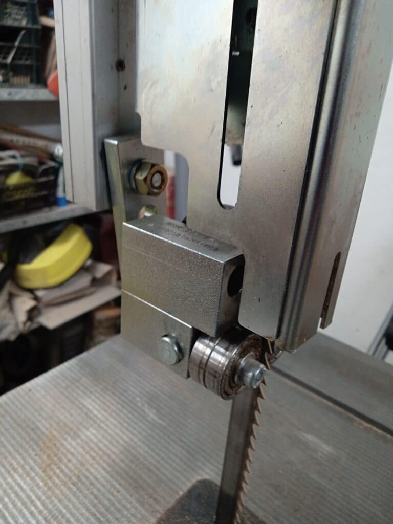 Unser deutscher Kunde hat die originalen Bandsägeblattführungen seiner Scheppach Basa 4 durch unsere 5×5-Führungen ersetzt – sowohl über als auch unter dem Tisch.