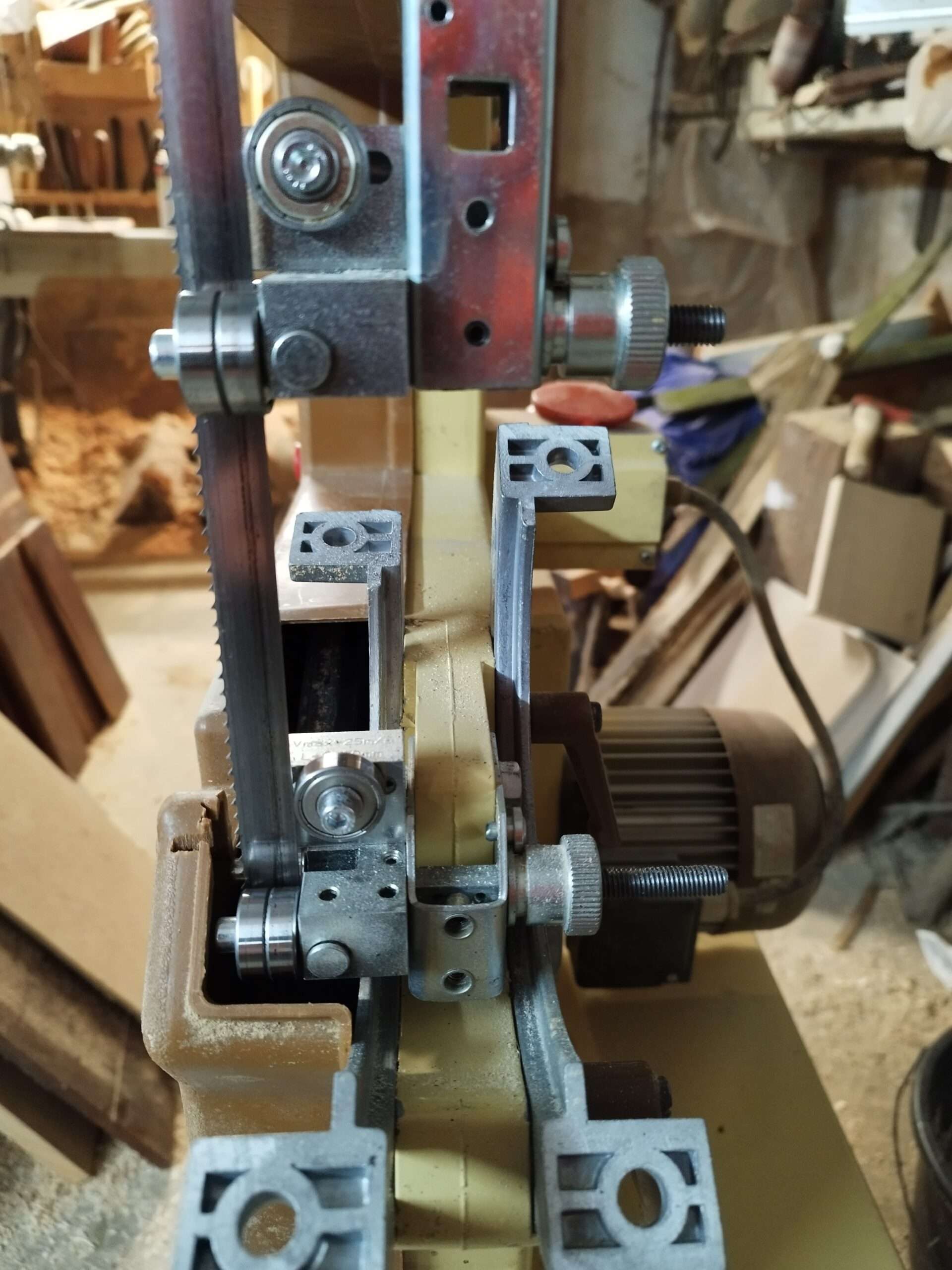 Wieder eine Scheppach HBS 32 Vario Bandsäge, was unsere 4x4-er Blattführungen bekommen hat. Bischen umbau, Basteln war benötigt, aber d...