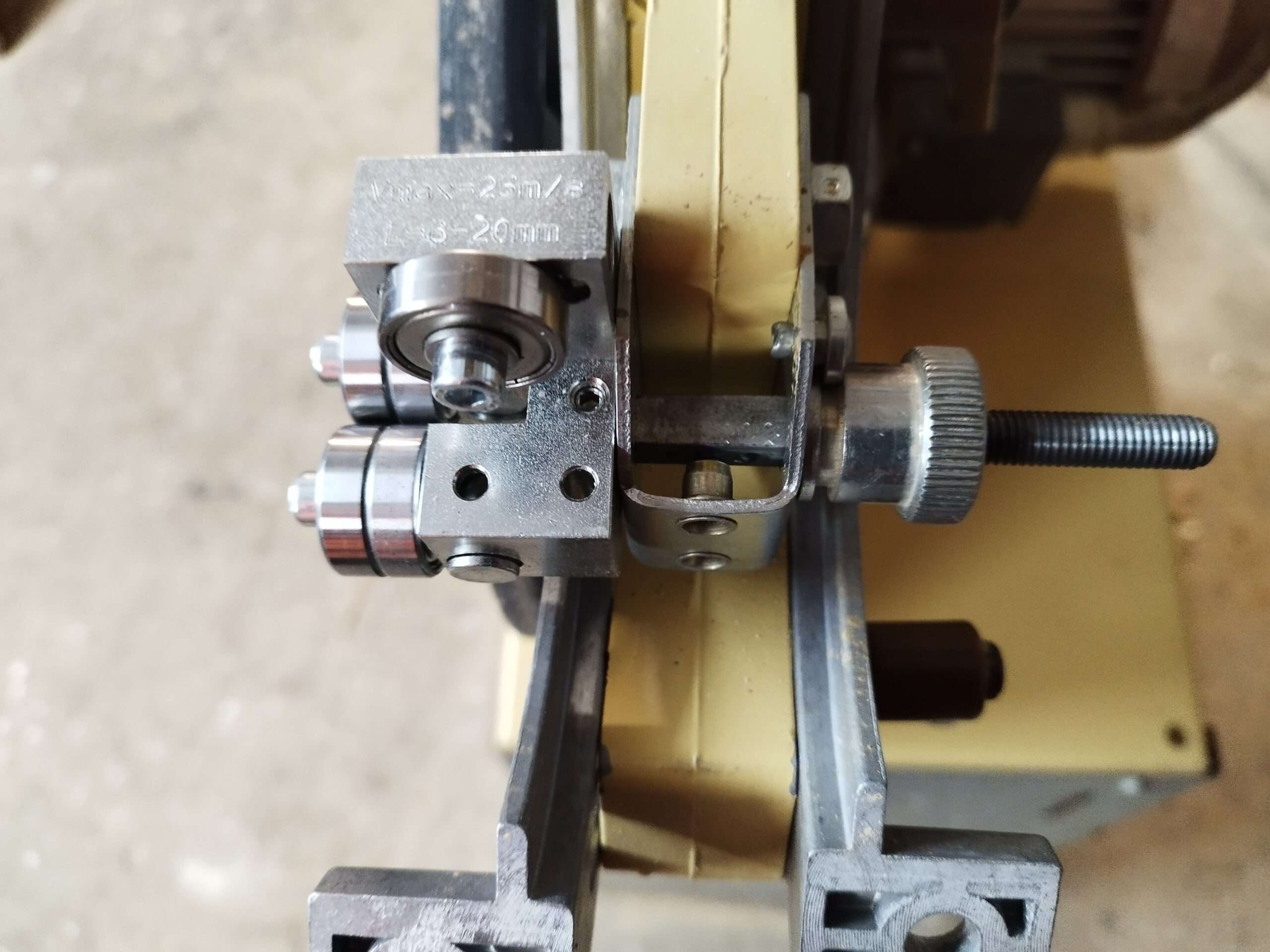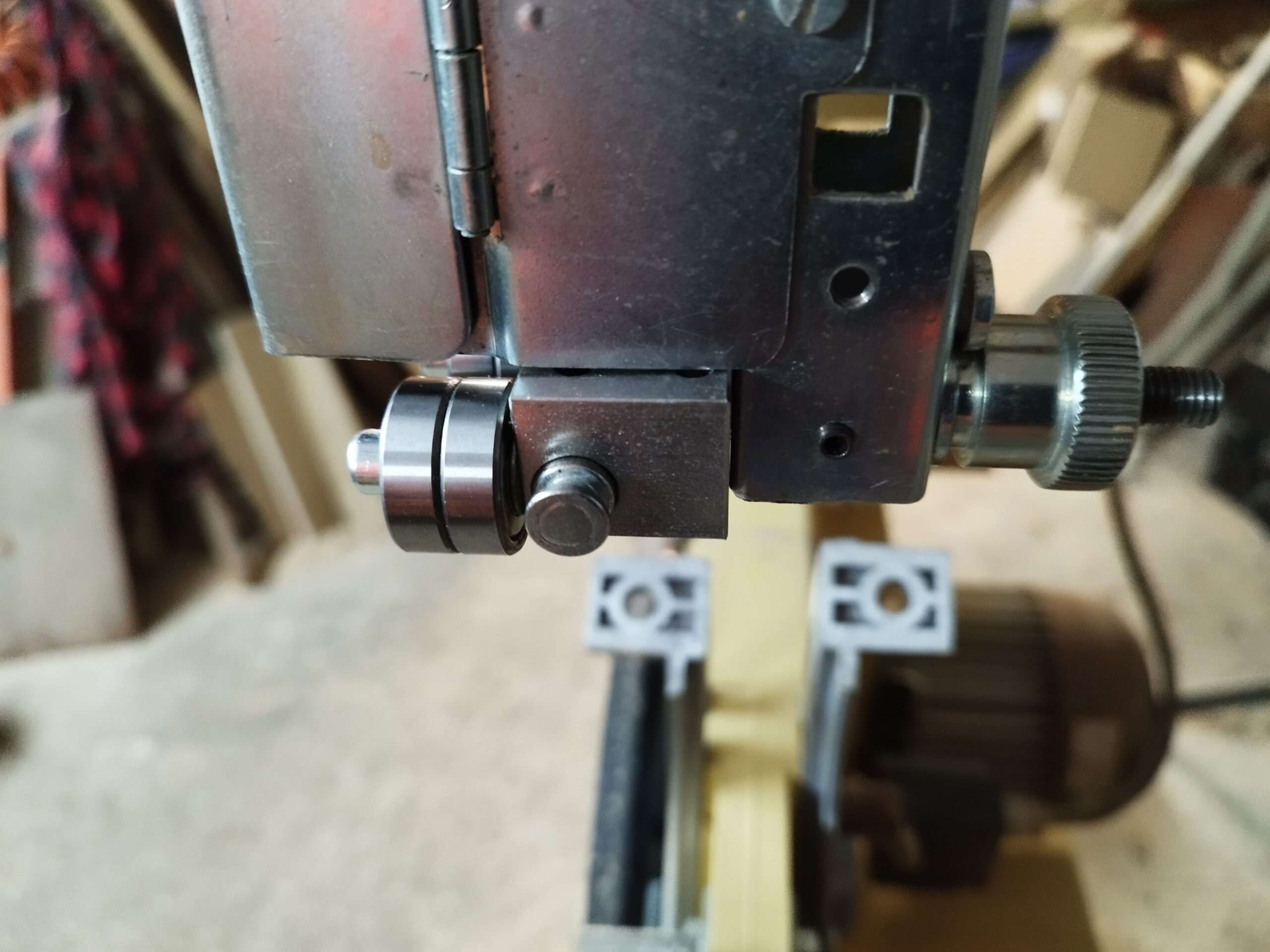 Habe meine Bandsäge Scheppach HBS 32 mit Ihrer Rollenführung umgebaut, habe dazu einen Drückerstift mit 8 mm (Zimmertüre) benutzt. Wollte die Originalteile nicht hernehmen.